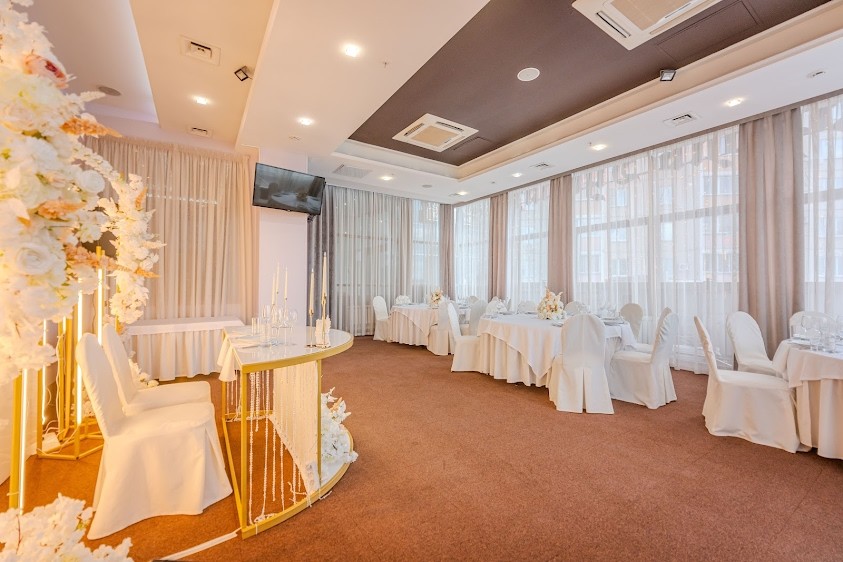 "Банкет-холл" идеально подойдет для проведения Вашего торжетства,а терраса, прилегающая к банкет-холлу. Идеально подойдет для проведения выездной регистрации или обустройства зоны отдыха на вашем празднике в теплое время года.